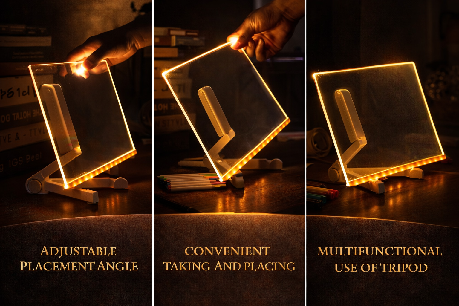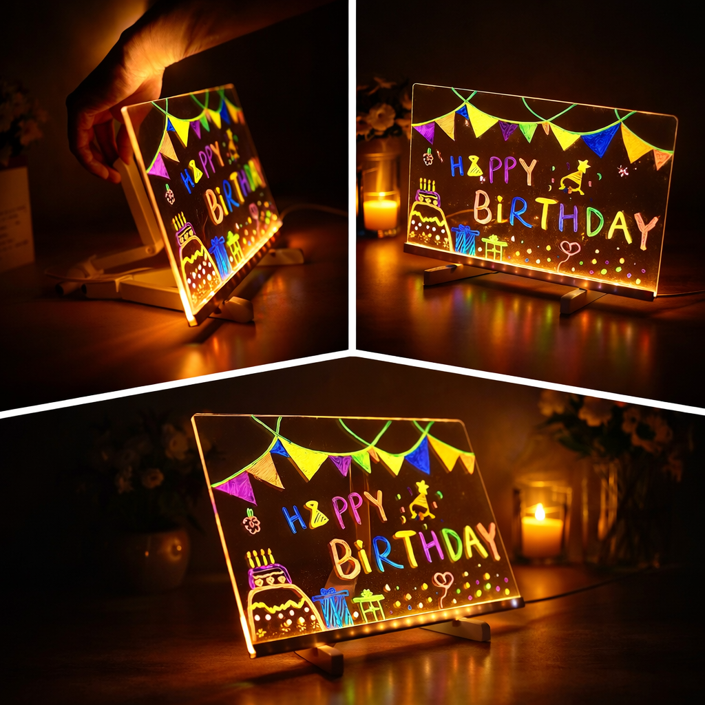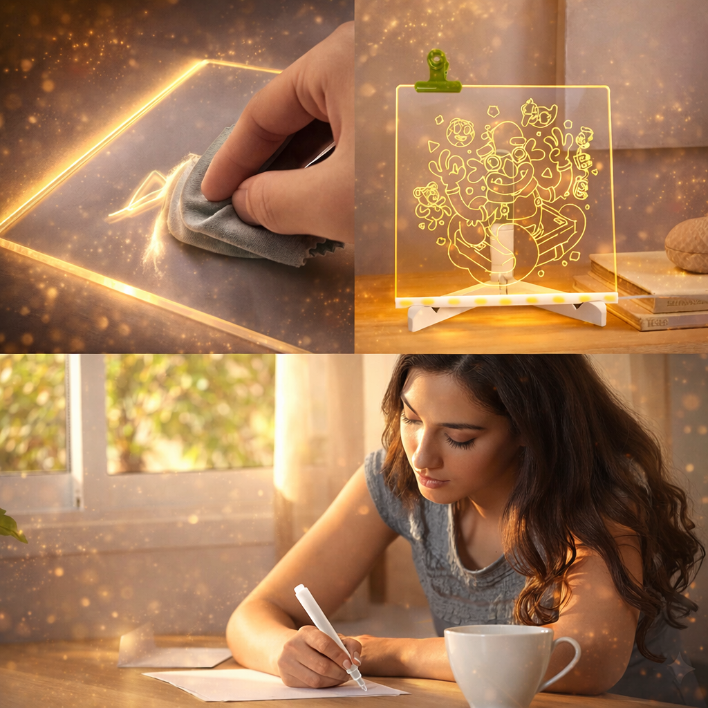 Light up your thoughts with this stylish transparent LED writing board. The warm glow creates a cozy vibe—perfect for your desk, bedroom, or office.
