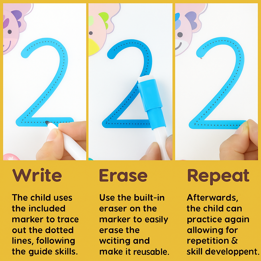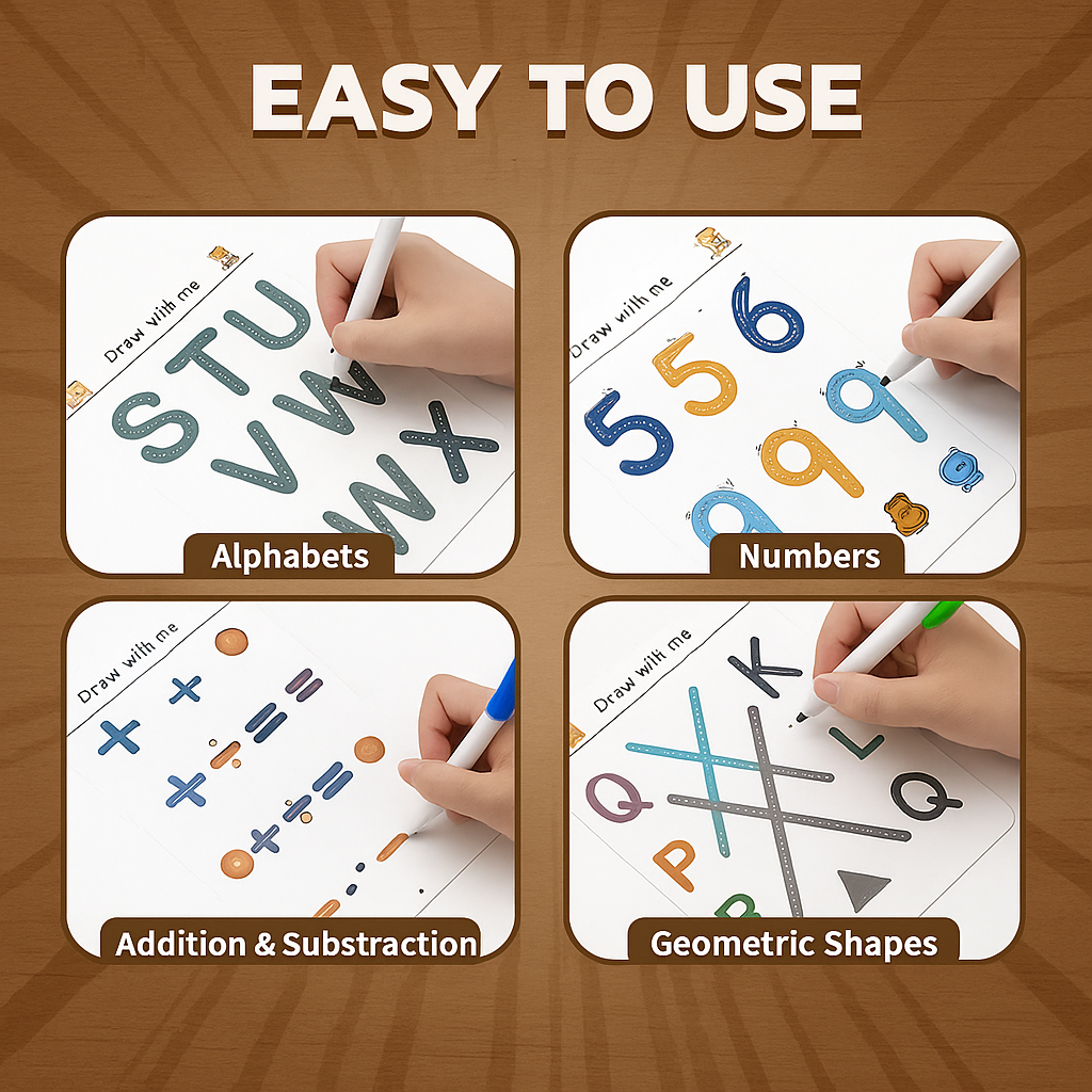 Perfect for Everyday Practice: Writable & erasable pages, thick & durable build, rounded corners for safety, and super easy to clean for endless fun.